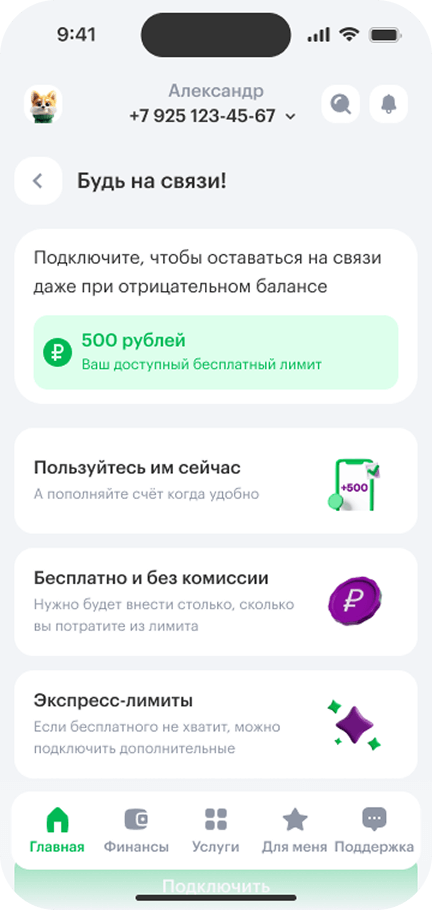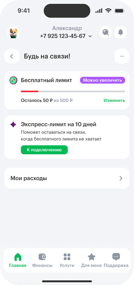 Экспресс‑лимит «Будь на связи!» может быть доступен только при наличии индивидуального предложения.